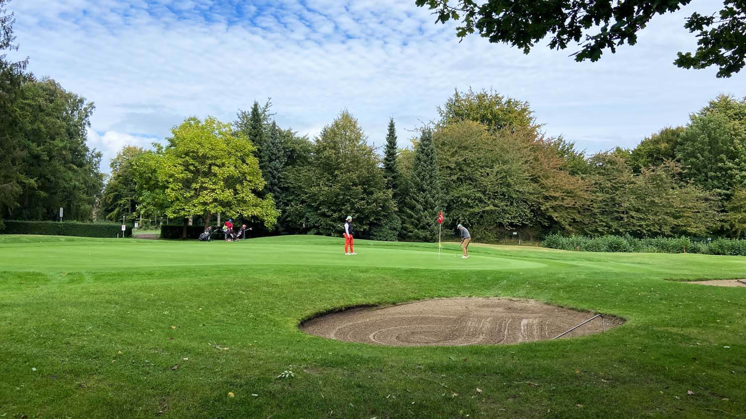Fast vergessen ist der zweite Sonderpreis Nearest-to-the-Pin: Mit 1,71m und einem sehr guten Putt zum Birdie auf Loch 8 sicherte sich Waldemar Wiewiora den NP Preis sowie ein Drittel des Birdiepools. Die anderen beiden Gewinner waren Christoph Eltester und Wolle Becker. Eigentlich wäre auch Felix Schumann dabei gewesen, aber der Kerl braucht kein Geld, Luft und Liebe reichen in seinem jungen Alter zum Glücklichsein 🤣. Das beste Birdie war diesmal ein Eagle, geschossen von Christoph Eltester an der 15. Kein Tap-In sondern einer der langen Putts, die heute alle reingingen.