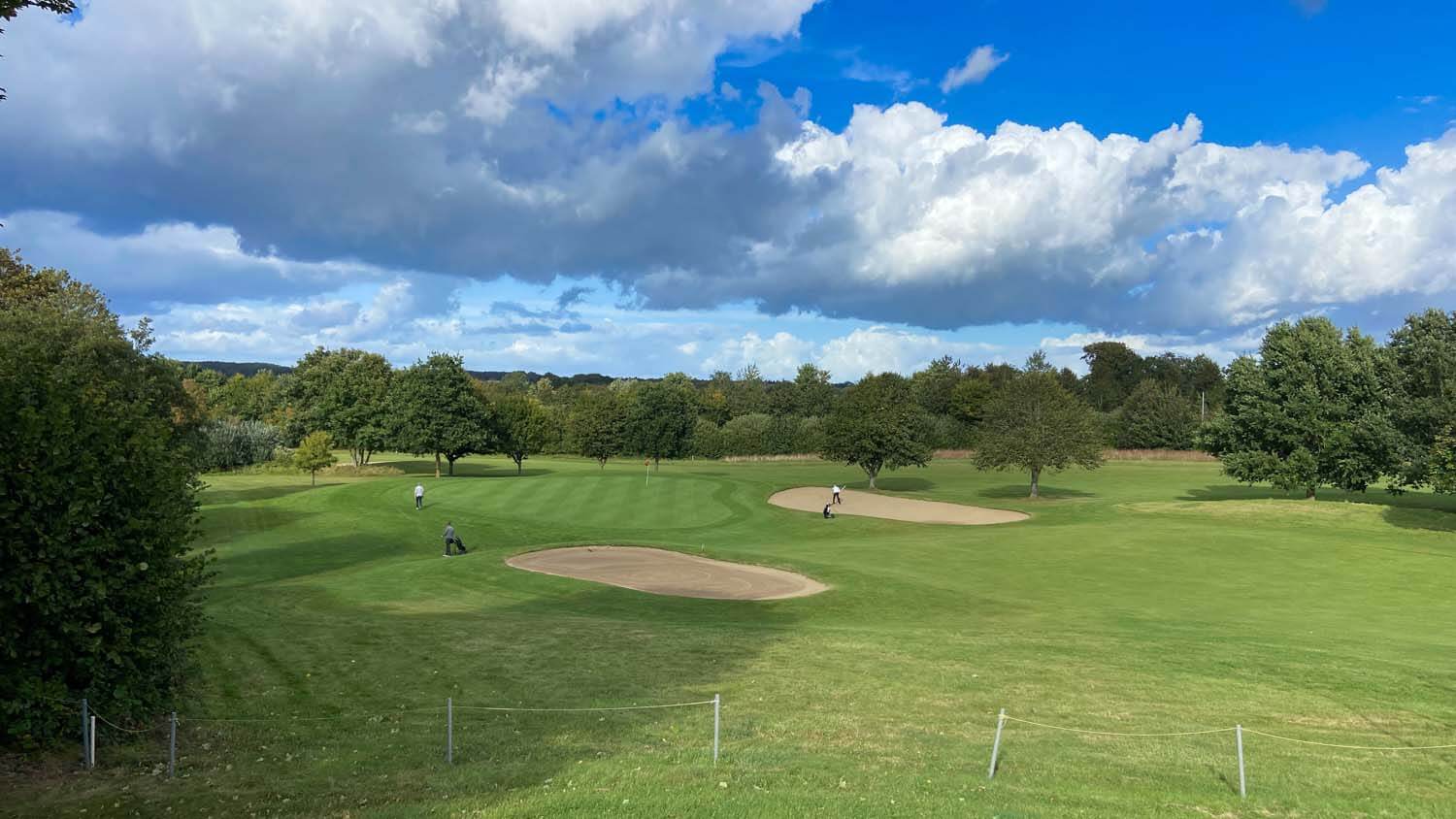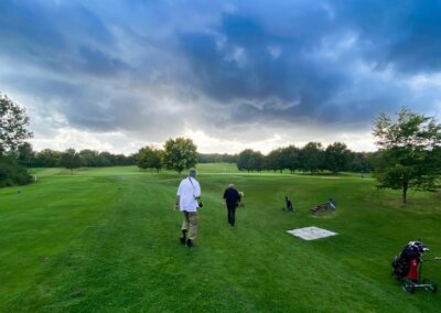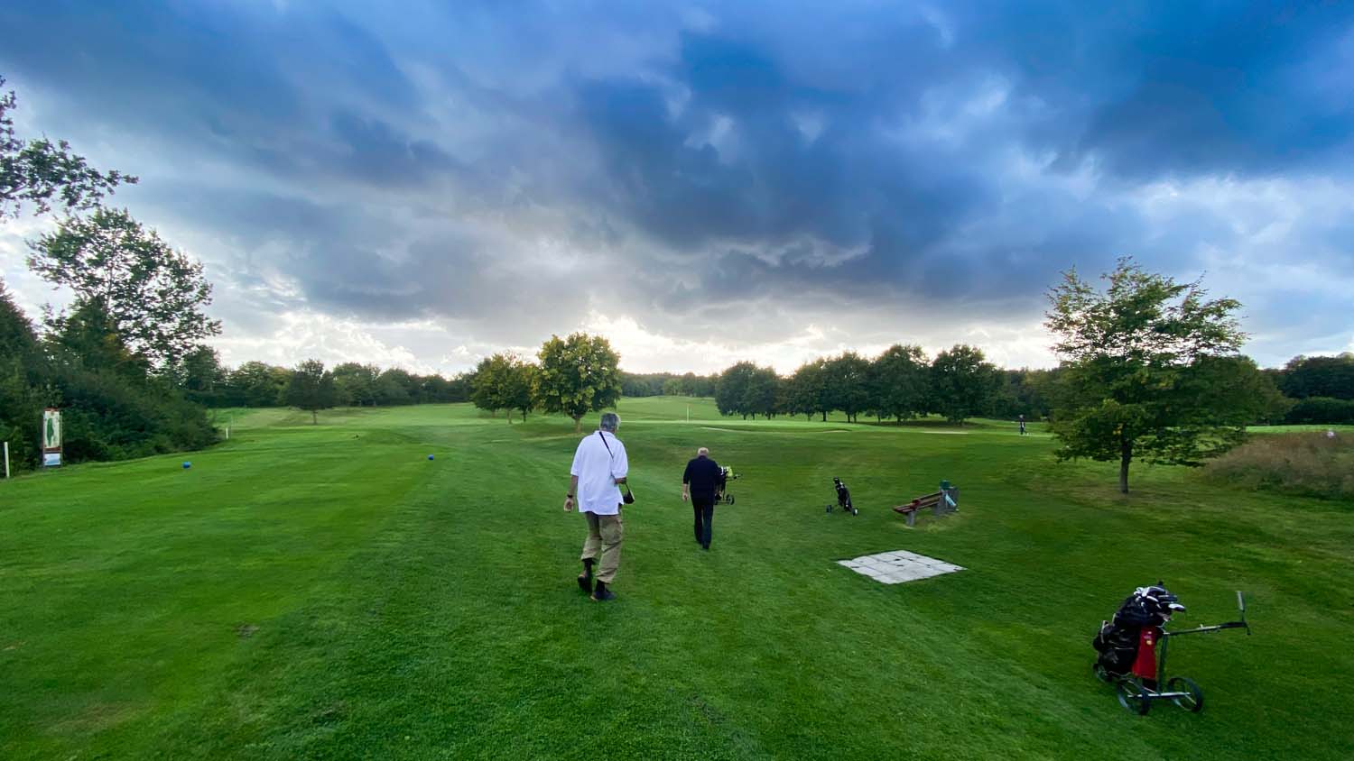 Egal ob früh oder spät gestartet, alle Kratscher wurden nass, oder waren bei schwül-warmem Wetter sowieso nassgeschwitzt. Der fehlende Wind tat ein übriges. Es gab aber auch Minuten, wo die Flights Schatten warfen 😁. Trotzdem wieder ein schöner Kratschernachmittag mit guter Beteiligung. 45 Kratscher spielten 18 Löcher, 5 Kratscher 9 Löcher. Der Platz war in sehr gutem Zustand, die Grüns grün und glatt 😊. Noch gab es einige braune, trockene Stellen wie auf der 12. Wehe, wer da nicht lang genug ist, die Bälle rollten gerne wieder komplett ins Tal zurück.