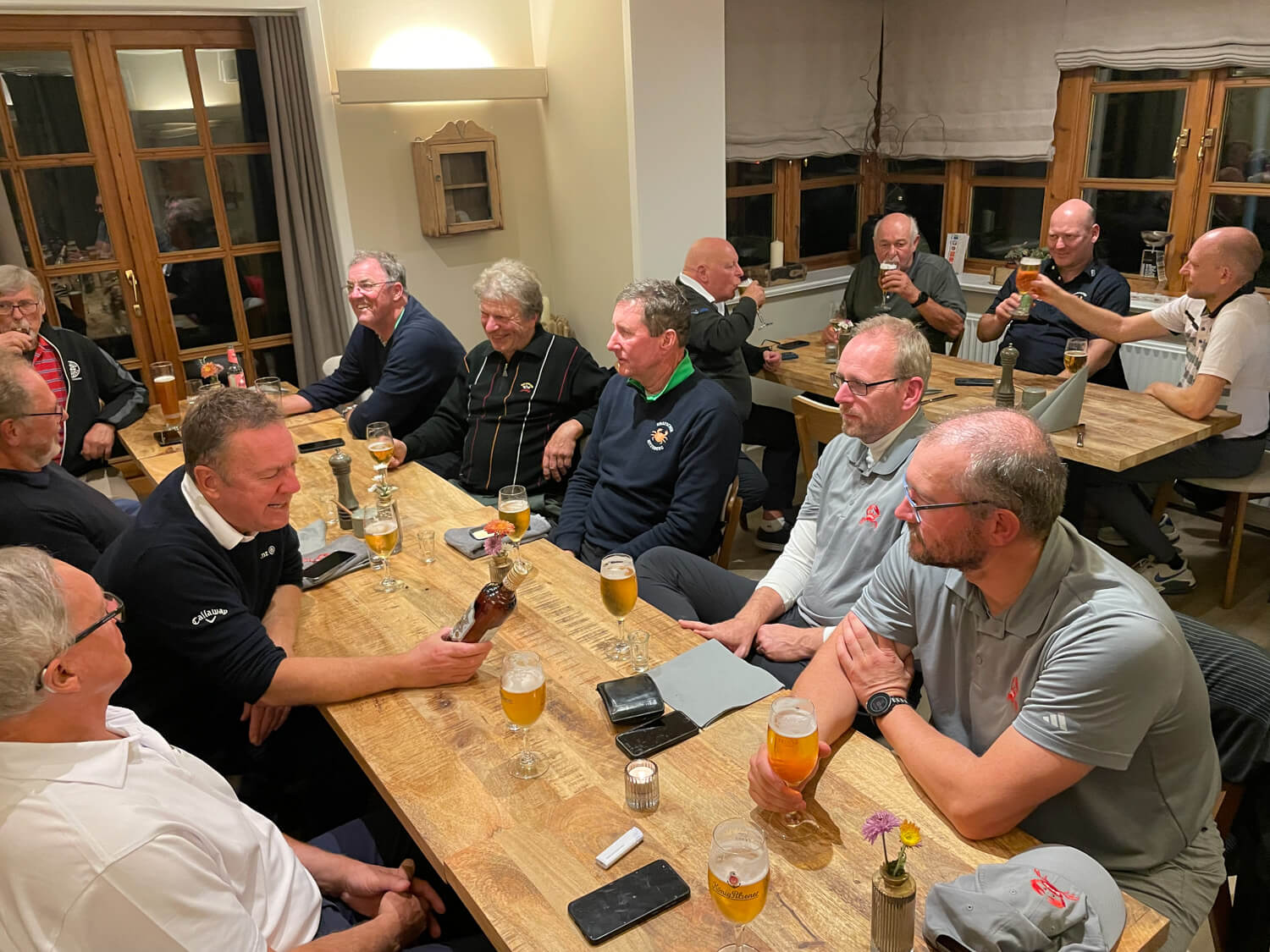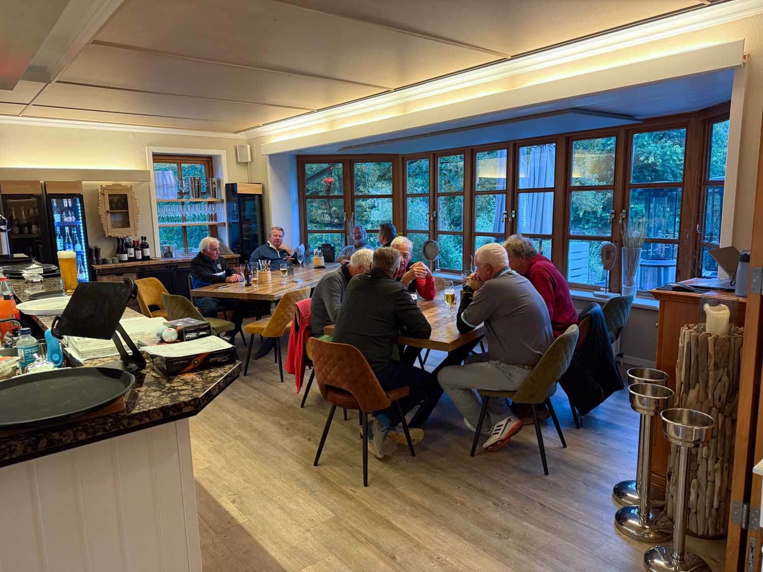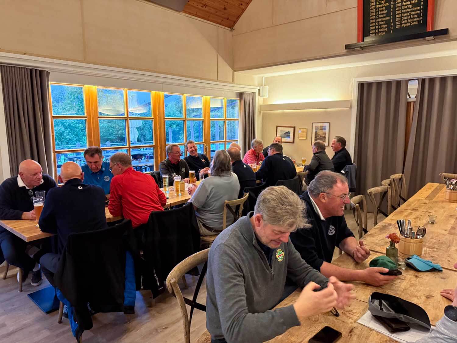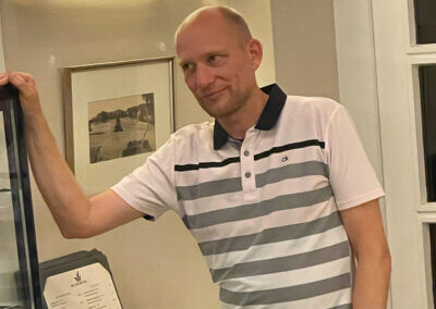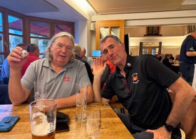 Noch nie war es ihm gelungen, nun war es so weit. In einem ganz engen Wettstreit mit Peter Geis konnte Paddy im Stechen den goldenen Kratscher erobern. Er war gaanz glücklich 😜. Viel besser machte es Jörg Ohrendorf (79 Schläge), nicht mal Thomas Hahn could reach him the water… Jörg wurde Brutto- und Nettosieger, 12 Kratscherpunkte für die Jahreswertung. Und was war mit Thomas? Die Frontnine mit 38 Schlägen ordentlich gespielt, aber auf dem alten Platz kamen einfach keine Pars (nur 1). Und dann noch das Doppelpar auf Loch 17. 85 Schläge, Thomas trugs mit Fassung (21 Punkte Vorsprung auf den Zweiten in der Jahreswertung). Im 9 Loch Wettbewerb gab es mal ein neues Gesicht. Thomas Krey hatte die Tage vorher überpaced… und musste nun kürzertreten. Das tat ihm offensichtlich gut, mit 30 Nettoschlägen war er mit Abstand ganz vorne. Aber Manni Boschmann ist nach der ganzen Aufregung rund um seinen Geburtstag wieder dabei und arbeitet an seiner Jahreswertung. Die Sonderpreise gingen an Cliff für den Longest Drive und an Michael Hecht für die 61cm auf Loch 8. Birdies an Par 3 Löchern gab es reichlich. 8 Birdies wurden gespielt, aber die Dänen haben so viel Geld, die zahlen nicht ein 🤣. Zum Schluss ließ sich Manni nochmal feiern, bekam ein ordentliches Zum Wohle Ständchen und gab auf seinen 90 Geburtstag einen aus 🍺🍺🍺. Ein schöner Golftag und ein schöner Abschluss im sonnigen Wildgarten.