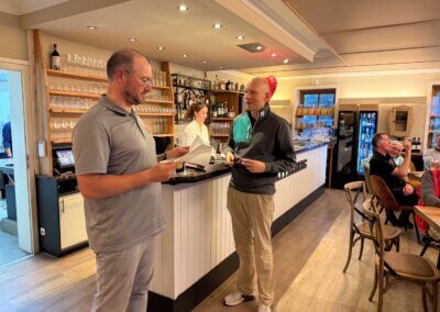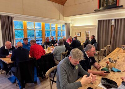Zuerst fertig waren die 9 Loch Golfer. Endlich wieder öfter am Mittwoch dabei, Wolfgang Böge! Schon 7-mal in den Punkten und nun gleich wieder Nummer 1 mit 34 Nettoschlägen und 3 Kratscherpunkten, die Luft für Manni Boschmann in der Jahreswertung wird dünner… Auch Siegfried Kaiser war gut gestimmt 🎹🤣 (für Insider) und kam mit 36 Nettoschlägen ins Ziel, 2 Points for Siggi.